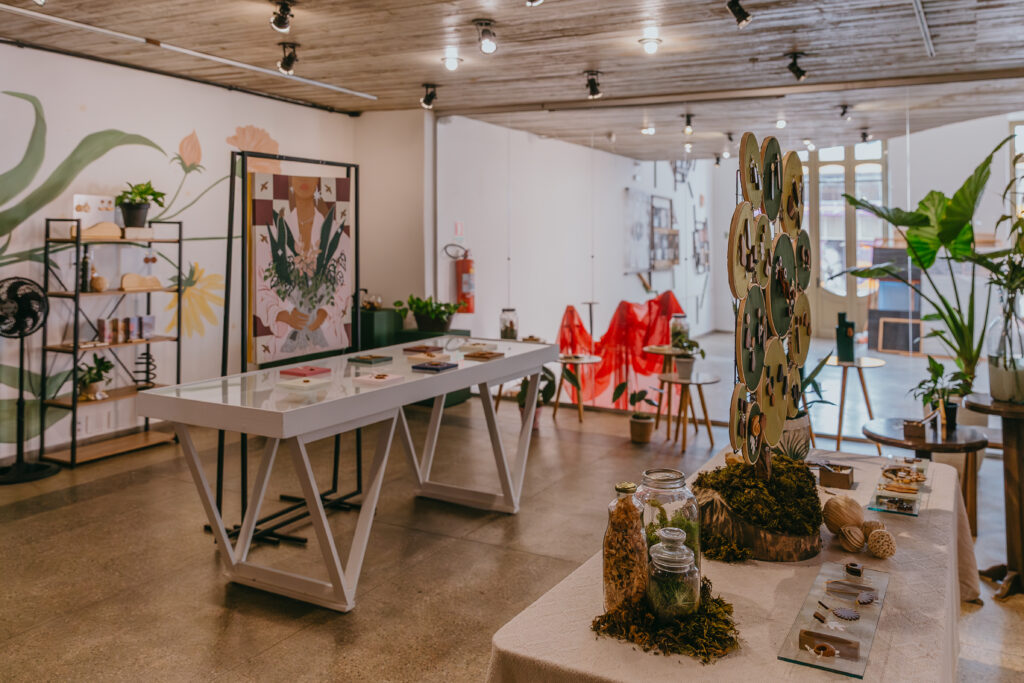 Além da comercialização, a ocupação propõe uma experiência visual integrada ao espaço expositivo. A ambientação da Vitrine conta com a participação da artista visual Carol Braz, que contribui com obras criadas especialmente para a mostra, e da designer de interiores Renata Gignon, responsável pela concepção e execução do projeto espacial.